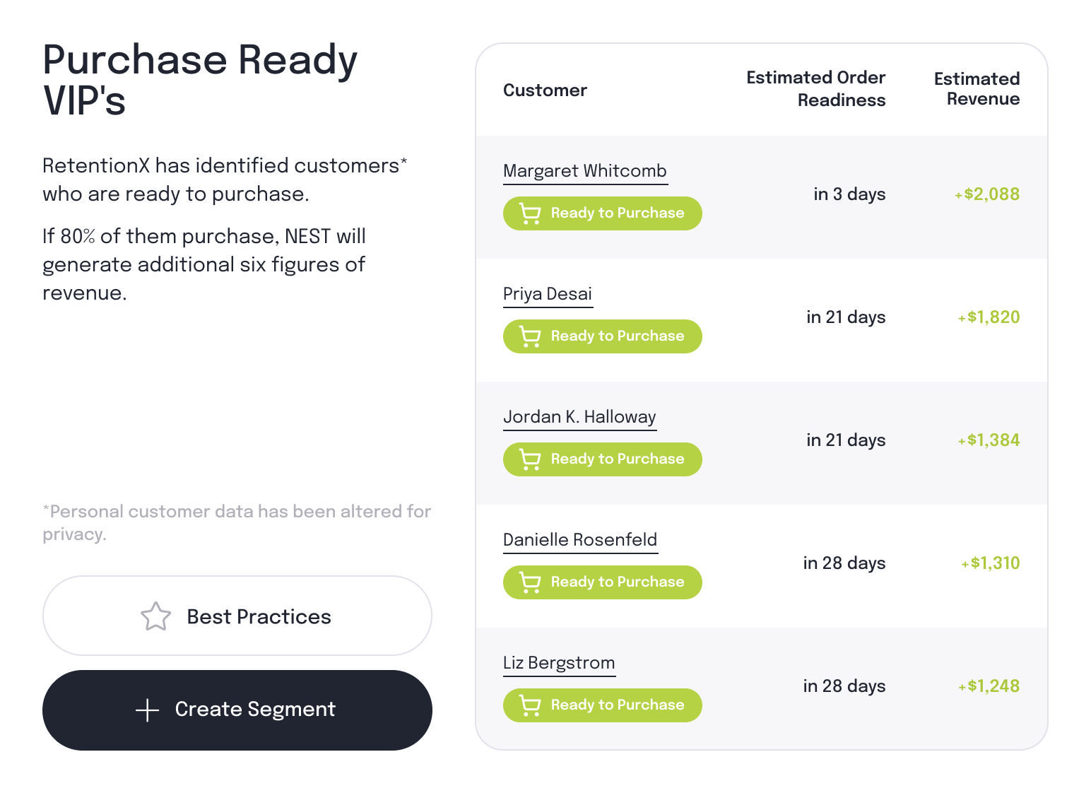 By combining customer value with predicted purchase readiness, RetentionX identified a segment of high-value customers who were actively approaching a buying window, even if they hadn’t interacted most recently.